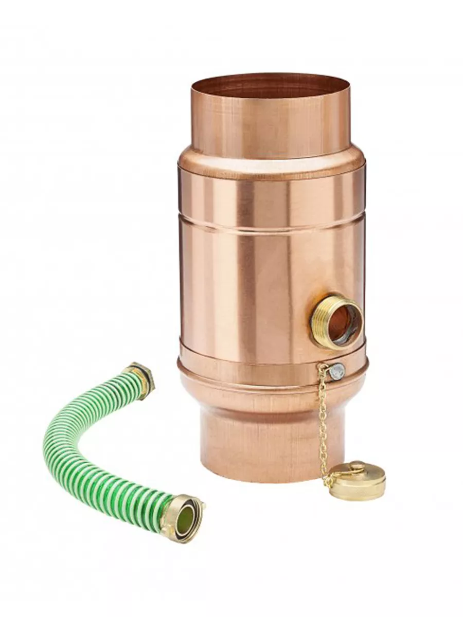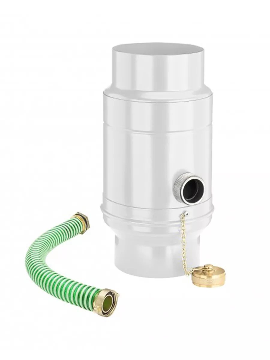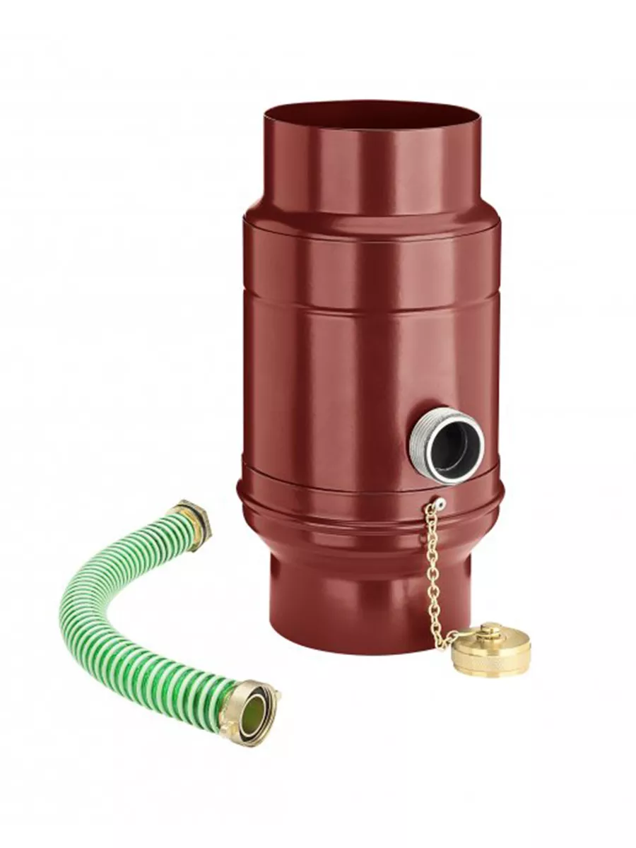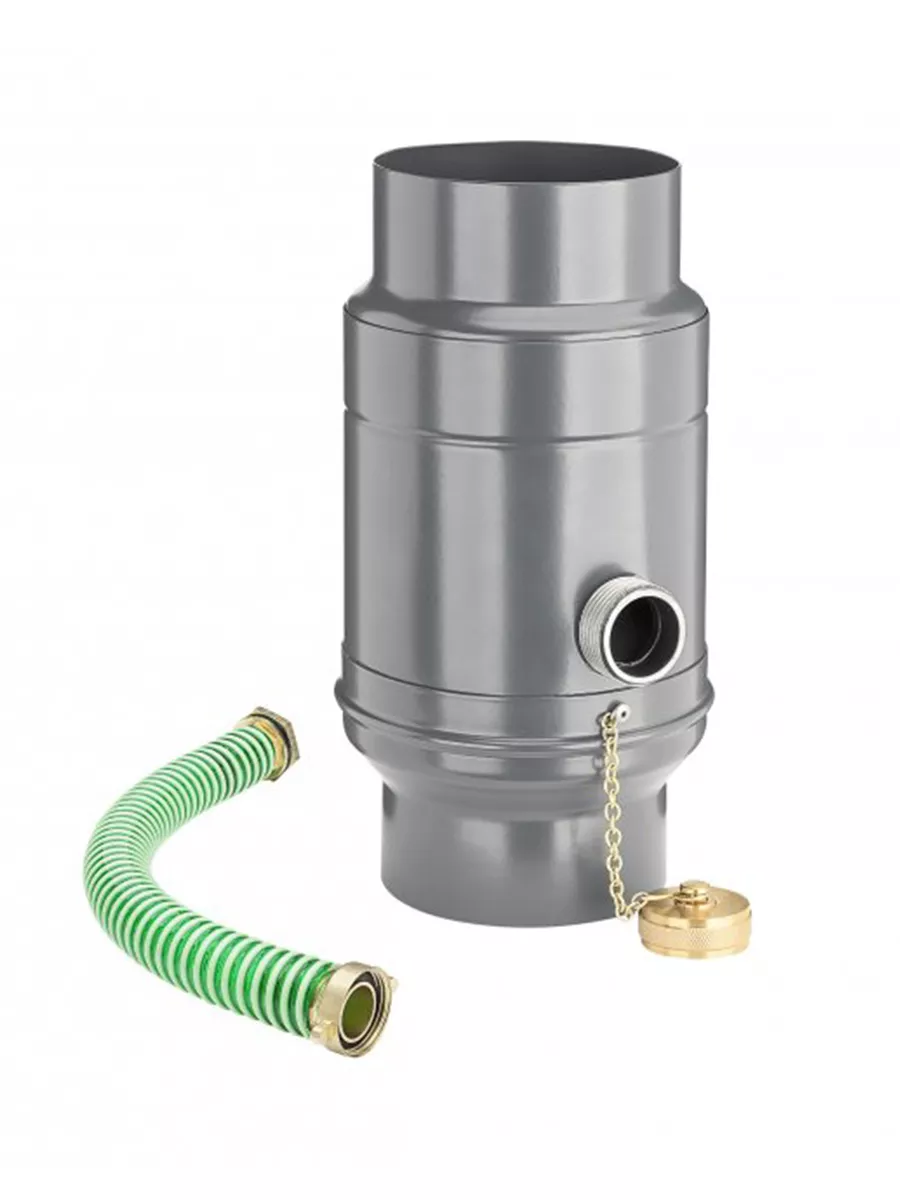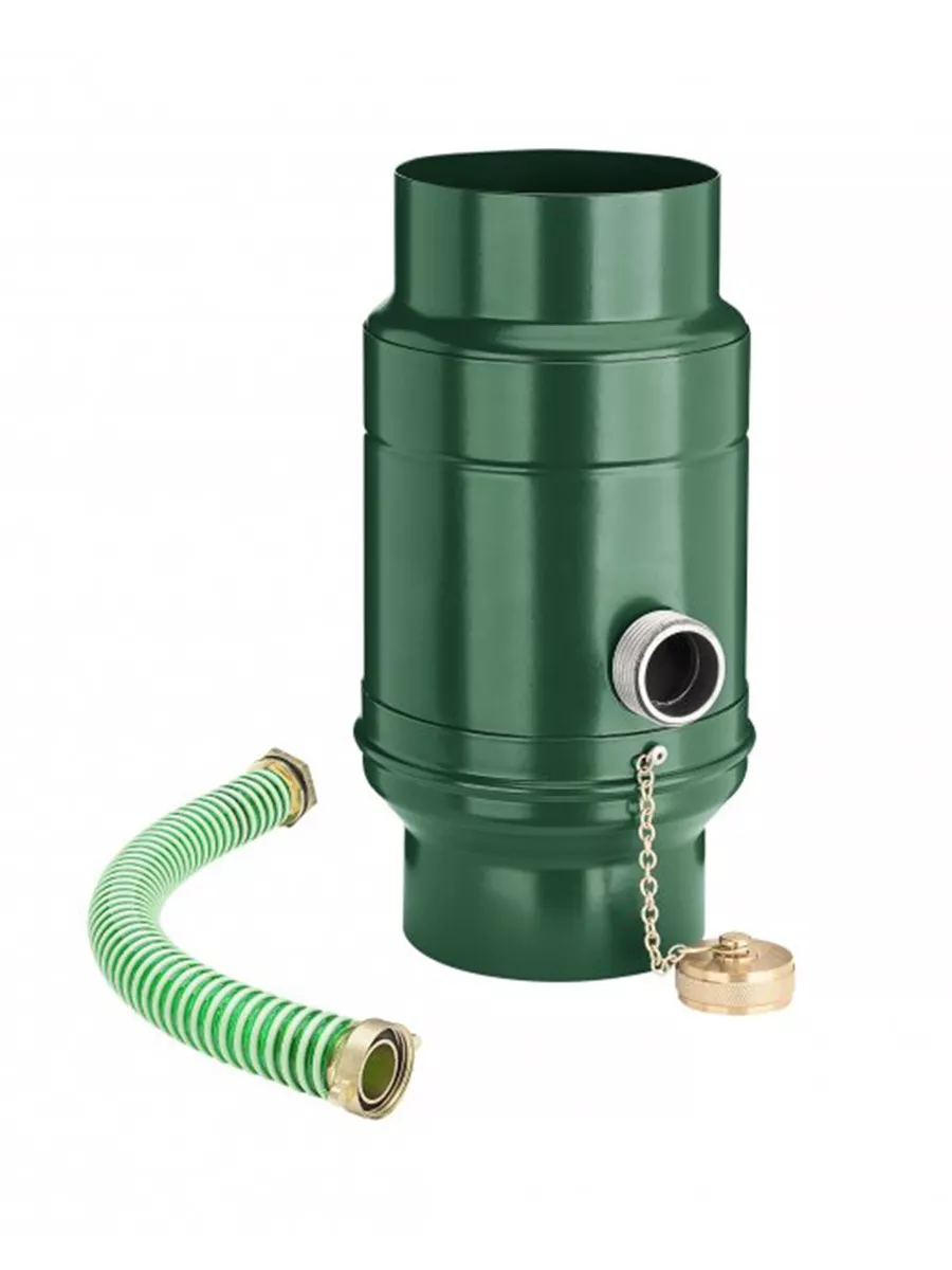 Zachytávač vody obohatený o odvádzač dažďovej vody pre zachytávanie do nádob v blízkosti zvodu. Vďaka systému KJG je jeho inštalácia jednoduchá. Tento variant je naviac doplnený o pripojenie hadice, ktorá Vám umožní odviesť vodu aj na vzdialenejšie miesta. Hadica je dodávaná v dĺžke 330 mm spolu so zachytávačom. Medzi jeho najväčšie prednosti patrí schopnosť naplniť zásobník do požadovanej výšky, zachytenie až 85 percent prichádzajúcej vody, mrazuvzdornosť a integrácia otvoru pre lepšie čistenie a údržbu.